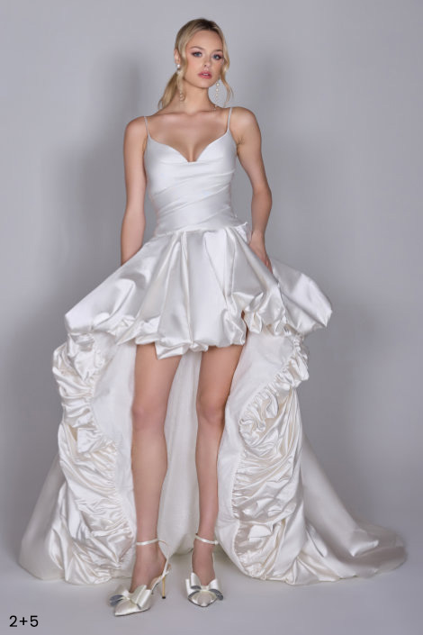 Introducing "The Perfect 10" – a groundbreaking bridal experience that elevates elegance and personalization to dazzling new heights. This collection invites brides to indulge in limitless creativity with a mix-and-match concept, offering five sumptuous bodices and five breathtaking skirts, all effortlessly interchangeable. Plus, as a special touch, a sixth bonus bodice and two detachable sleeve accessories add even more magic, allowing up to forty exquisite style combinations. Each piece is crafted from the finest materials, including opulent Japanese Silk Mikado, lustrous Duchess Silk Satin, delicate French Lace, and luxurious Italian Satin.